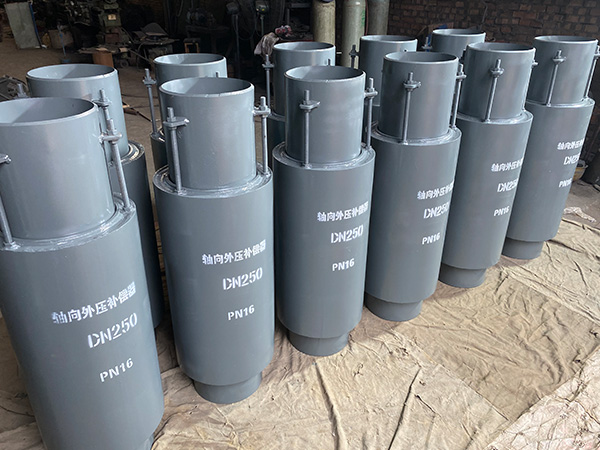 直埋外壓式補(bǔ)償器的波紋管兩端分別與外管,通管相連,能吸收較大的軸向位移,用于直埋熱力蒸汽管道。但在用于大口徑管系時(shí)因內(nèi)壓推力過大,要注意固定支架的強(qiáng)度,以免在試壓時(shí)發(fā)生固定支架坍塌現(xiàn)象。